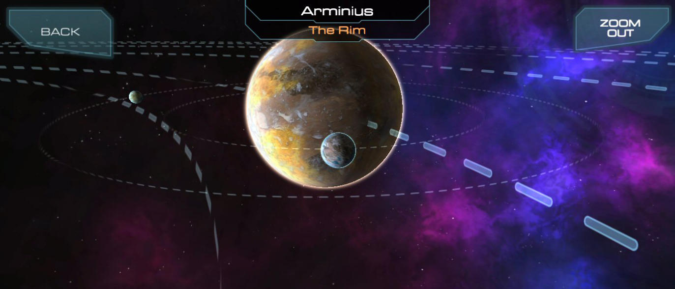 ArminiusArminius ist der erste Mond von Muir im Blue Sun System.Die Wasserfläche von Arminius ist leblos. Die für Menschen ungiftige Mineralisierung verhindert die Bildung von Plankton. Da aber der Großteil des Mondgesteins Wasser speichern und transportieren kann, gibt es großflächige Verfügbarkeit von Grundwasser.Der Mond besticht durch endlose künstlich angelegte Wälder, fruchtbaren Boden und wird als landwirtschaftliches Paradies für Bauern und Viehzüchter angepriesen. Nur wenige Zonen bestehen aus hydrophoben Gestein. In den roten Bergketten ist Eisen zu finden.Arminius wurde 2440 zur Besiedelung freigegeben. Landspekulanten hatten sich bereits im Vorfeld die Rechte an dem bewaldeten Land gesichert und verpachteten diese mit horrenden Gewinnen. Ungefähr 80% des Mondes befindet sich im Privatbesitz der Landlords. Durch die Gründung von Städten und einem Schienennetz wurde der Wert der Pachtgebiete weiter gesteigert. Bisher zeigen die großen Unternehmen kein Interesse an Arminius. Es fehlt an Bodenschätze, Kapital und Subventionen.Fast alle Geschäfte und Firmen sind im Privatbesitz. Die Landlords (Großgrundbesitzer) investieren nur wenig in ihren Besitz. Die meisten spekulieren auf einen Anstieg des Grundpreises, wenn eine neue Besiedlungswelle ansteht.
